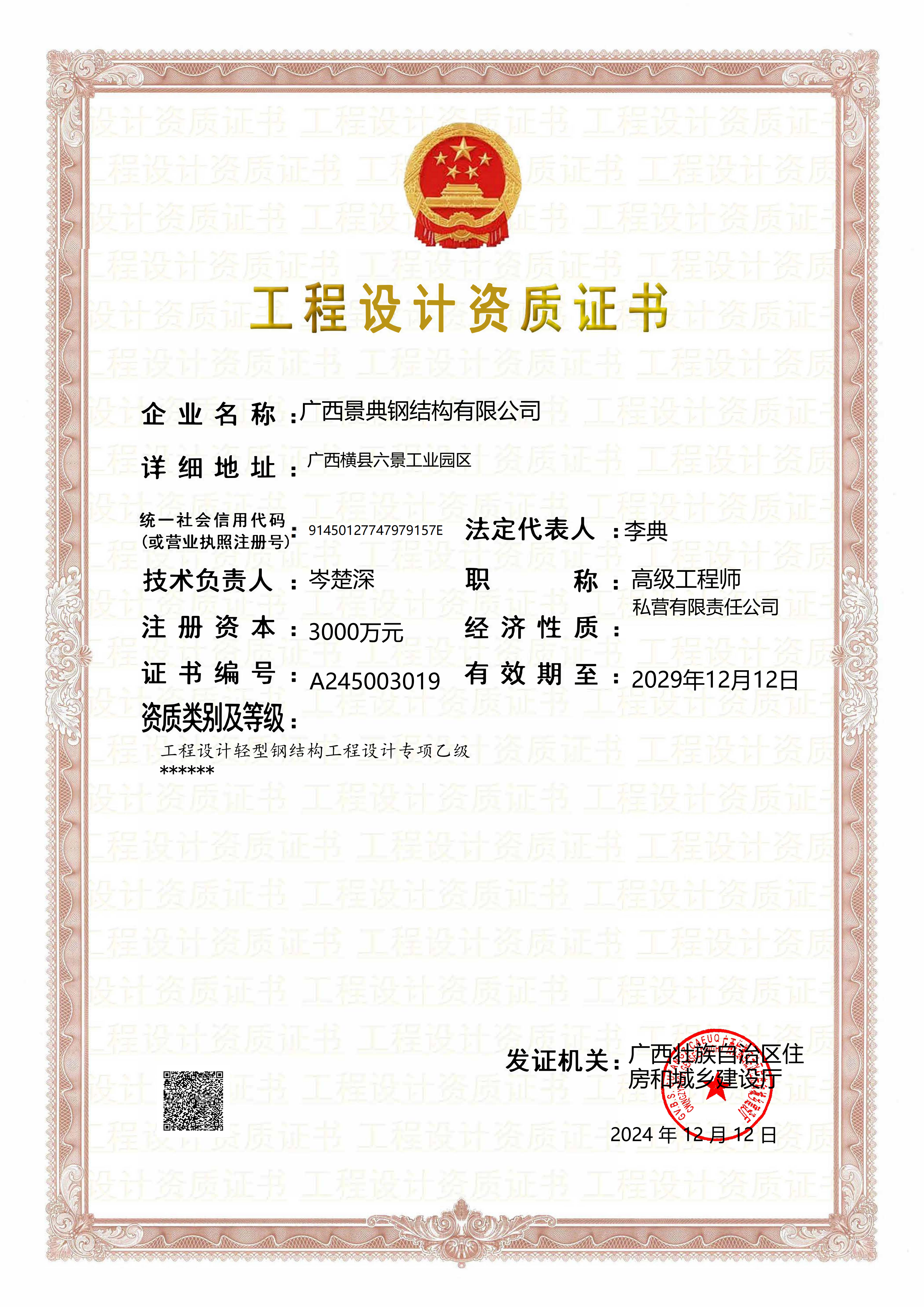 工程设计资质证书