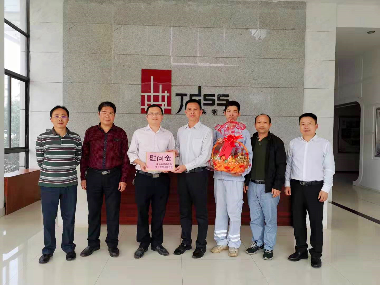 1月10日上午,县统战部副部长、县工商联书记邬立秋同志偕同工商联副书记方文忠、工商联副主席谢仕、黄远志等一行深入景典公司六景工厂开展关怀慰问活动,并给景典公司送来慰问金和果篮,送来县委县政府的关怀和支持,景典公司领导和全体员工对此次慰问活动表示真诚的感谢,感谢县委县政府、县统战部、县工商联领导的亲切关怀。