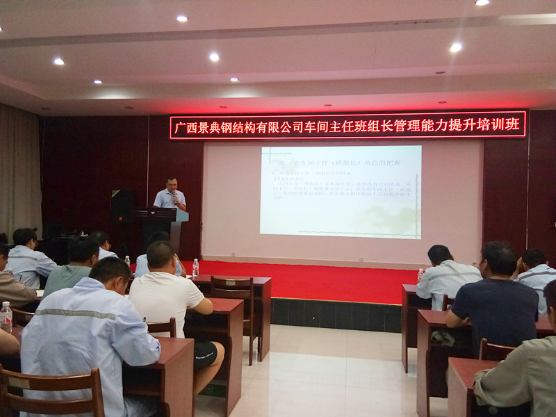 2019年7月27日,“广西景典钢结构有限公司2019年上半年工作总结会”在公司六景工厂四楼会议室隆重召开。公司总经理夏云飞先生全面总结景典公司2019年上半年工作成果,制定和部署2019年下半年工作计划和需要改善提升的奋斗目标。