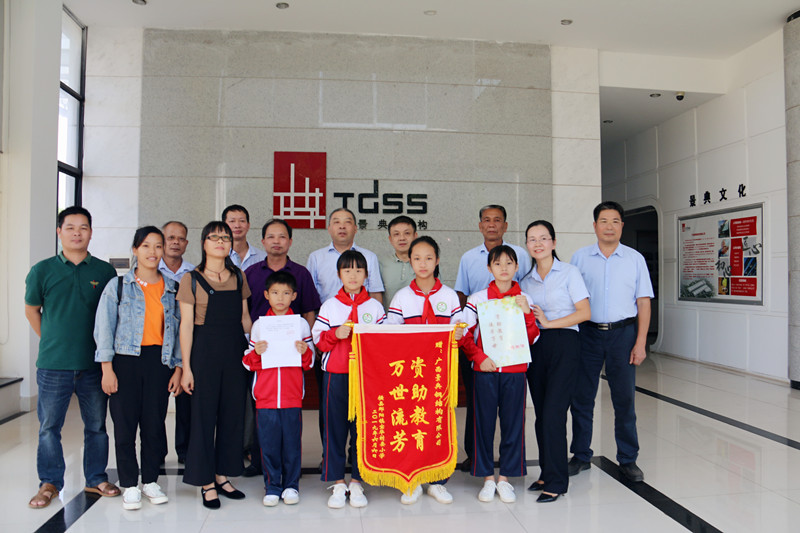 10月11日下午,横县人大法制委副主任潘新文,横县那阳镇宝华小学校长卢顺创,宝华村村委主任姜湖宗,以及宝华小学的师生代表一行到景典钢结构公司赠锦旗感谢公司的爱心筑梦行动。