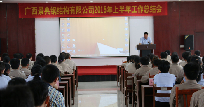 2015年7月10日,我司在六景工厂四楼会议室隆重召开“2015年上半年工作总结大会”,总经理夏志林、监事会主席夏云飞、党支部书记,副总经理甘书明、总工程师梁冲等领导出席会议,全体员工参加了会议。