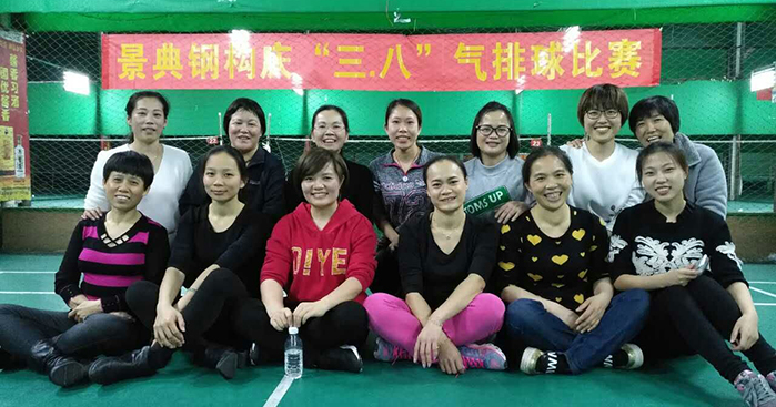 阳春三月,桃李争艳,我们迎来了一年一度的“三八”国际妇女节。为活跃公司员工的文化生活,让女职工过一个健康快乐、难忘而有意义的节日,3月8日下午,在蓝天体育馆举办了景典钢构“庆三八”女子气排球友谊赛和儿时的斗鸡活动。公司项目运营副总夏云飞、营销总监张胜利、财务总监秦前檩、工会主席苏国惠出席活动并代表公司向全体“女神”致以节日的问候。