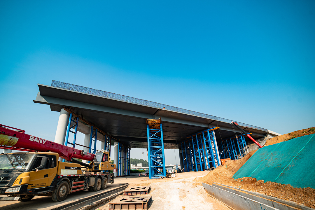G80广昆高速南宁至百色段石埠北枢纽互通钢箱梁进入攻坚提速冲刺阶段