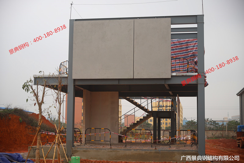 该项目位于广西南宁六景工业园区。项目所用预制混凝土、预制钢构件、整体卫浴均由广西景典装配建筑股份有限公司自主生产,由广西建筑科学研究院研发参建,是广西首家自产自营自建的装配式建筑示范项目。