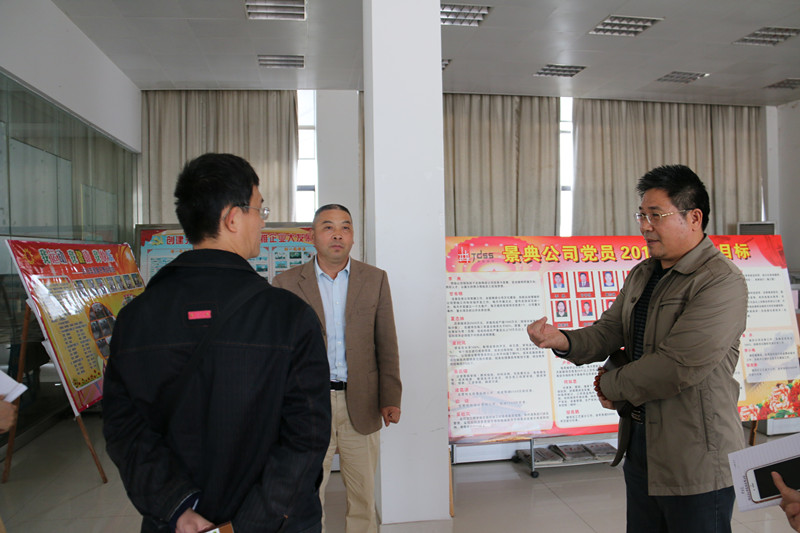 首次会议告一段落,公司生产副总夏云飞、党支部书记甘书明带领评审专家组及横县工商质量管理局领导到公司产品展厅和生产车间现场参观,详细讲解公司制造生产的操作流程和相关规范。