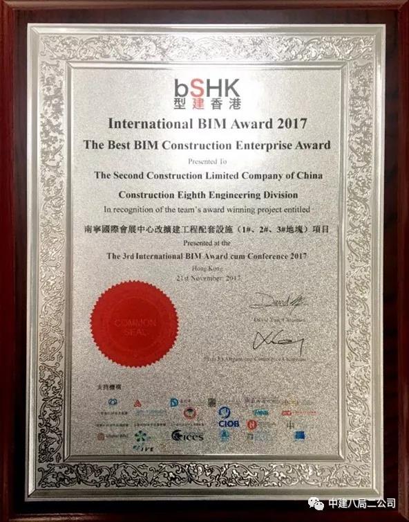 据悉,南宁国际会展中心改扩建工程配套设施(1#、2#、3#地块)项目在BIM国际大赛中脱颖而出,荣获“最佳BIM施工企业”奖项。