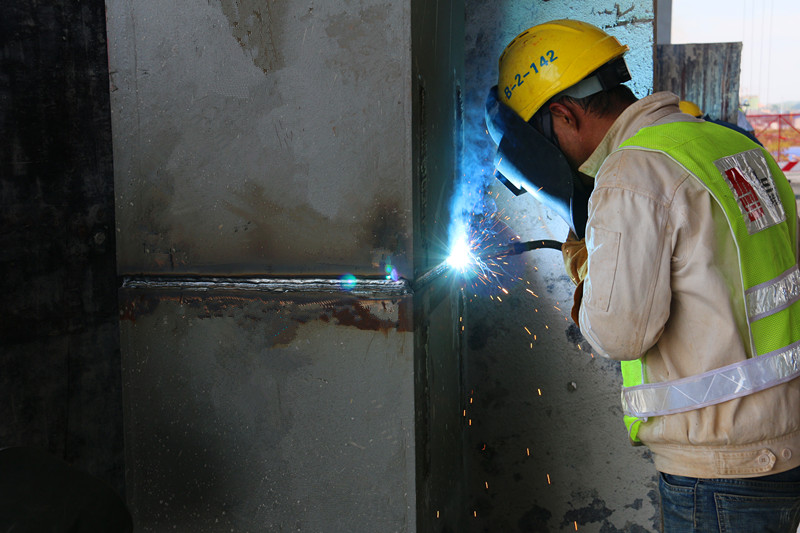 在施工现场举办了一场“弘扬工匠精神,点亮焊艺人生”为主题的劳务工人焊接技能比赛。