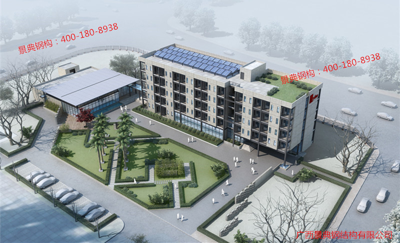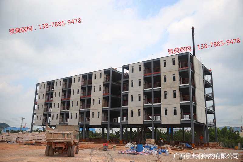 该项目位于广西南宁六景工业园区。项目所用预制混凝土、预制钢构件、整体卫浴均由广西景典装配建筑股份有限公司自主生产,由广西建筑科学研究院研发参建,是广西首家自产自营自建的装配式建筑示范项目。