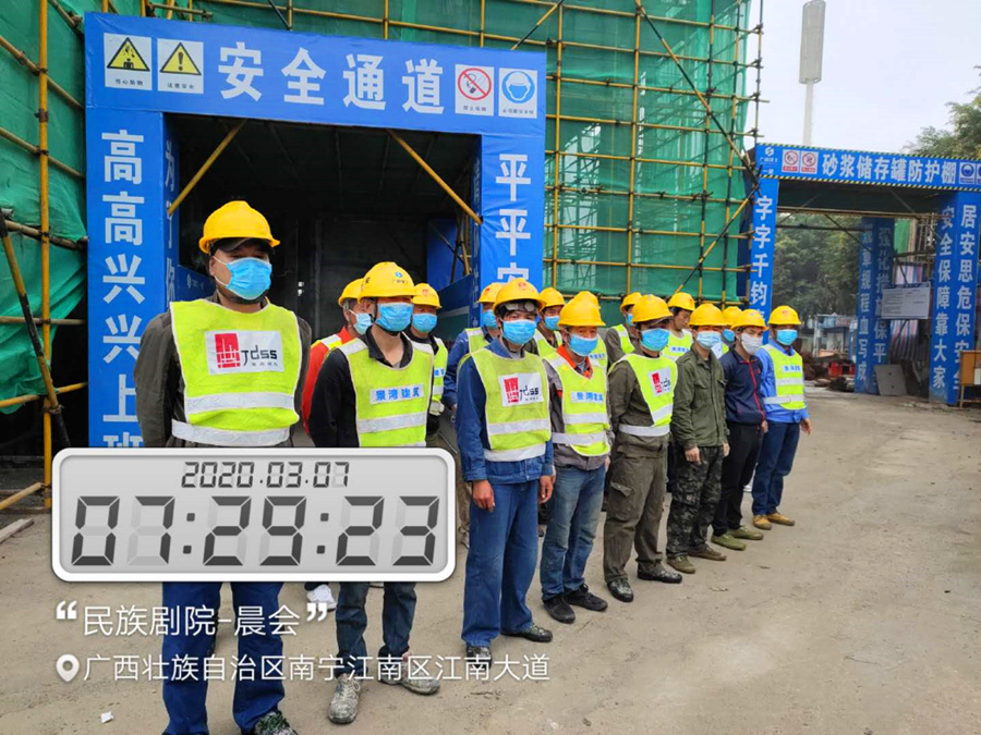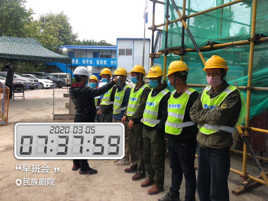 公司成立防疫工作领导小组,项目部设立以项目经理为组长的防疫工作小组,在项目开工前编制复工复产防控方案、防疫工作应急预案、隔离观察制度等疫情防控相关规章制度。并严格要求各项目部详细排查人员情况,通过梳理登记人员返程时间,每天进行体温测量登记,对已到岗人员的行动轨迹进行详细记录等,同步建立人员台账。