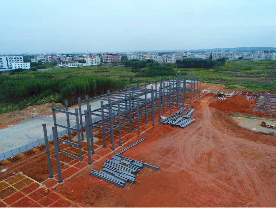 横县大竹小学项目加班加点进行教学楼主结构安装和土建施工。