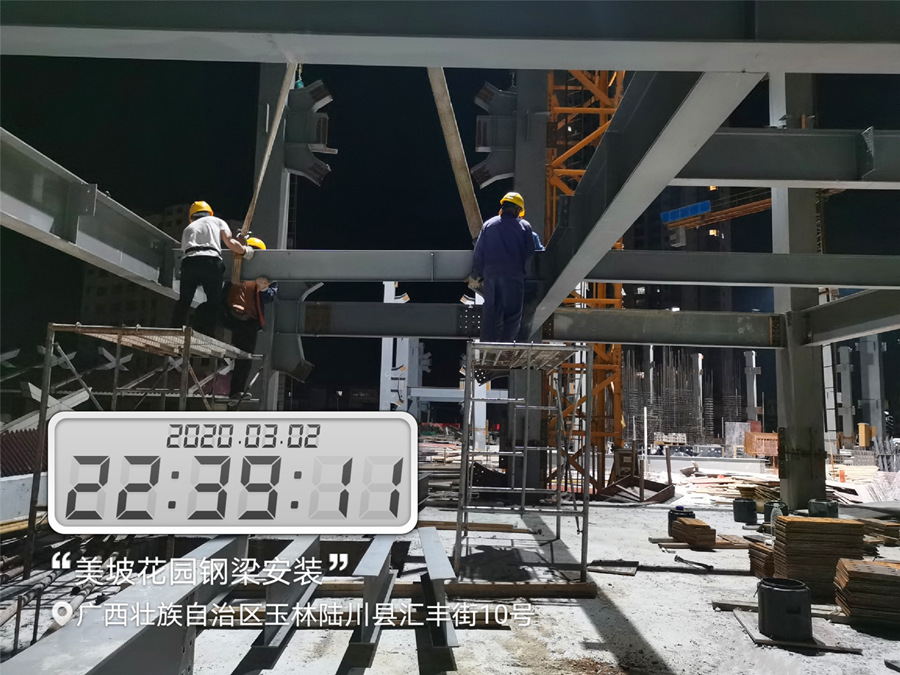 玉林市首座人行天桥(玉林金城商厦人行天桥)主体结构的完成安装。