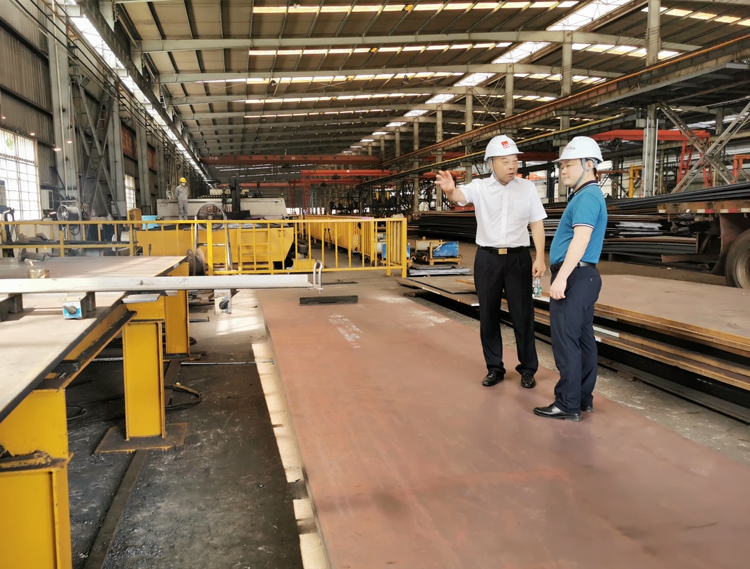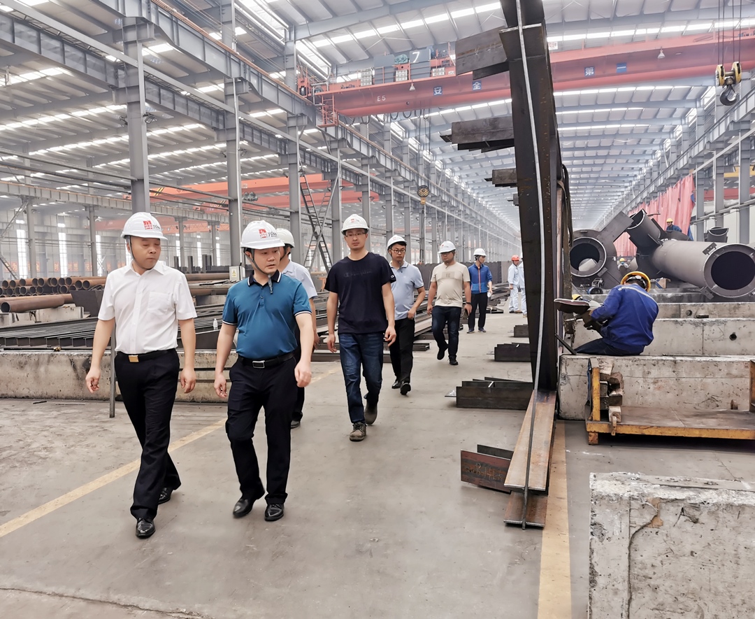 近日,安徽中亚钢结构工程有限公司计康生总经理率领公司项目管理团队莅临广西景典钢结构有限公司生产基地考察交流,景典公司总经理夏云飞、加工厂厂长王永旭等相关项目负责人陪同交流。