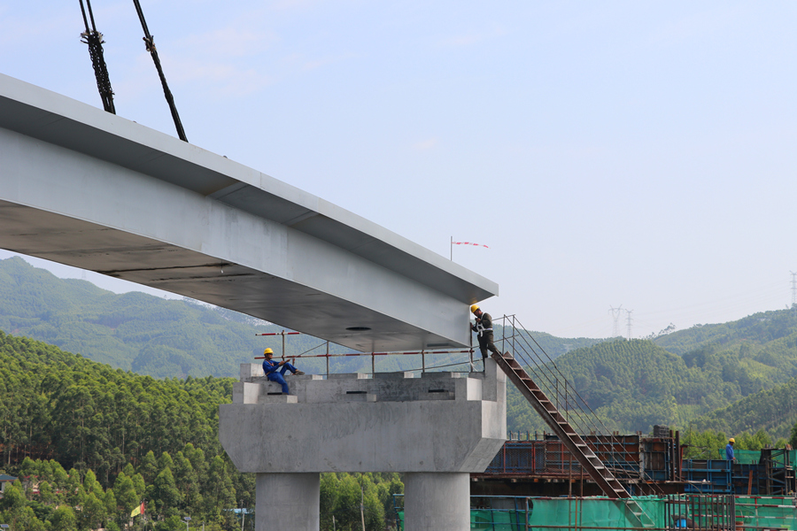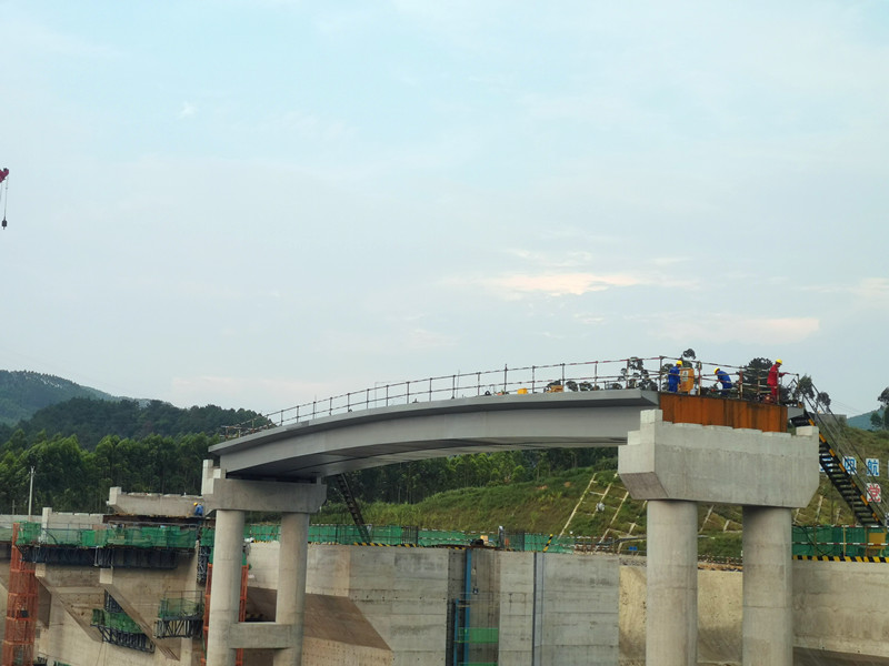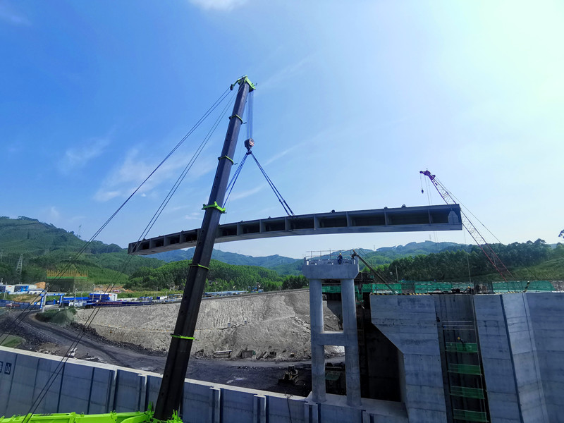 7月26日,由中交第四航务工程局承建,景典公司参与钢结构建设的广西柳江红花水利枢纽二线船闸工程项目控制性分项工程坝顶交通桥钢箱梁顺利吊装。