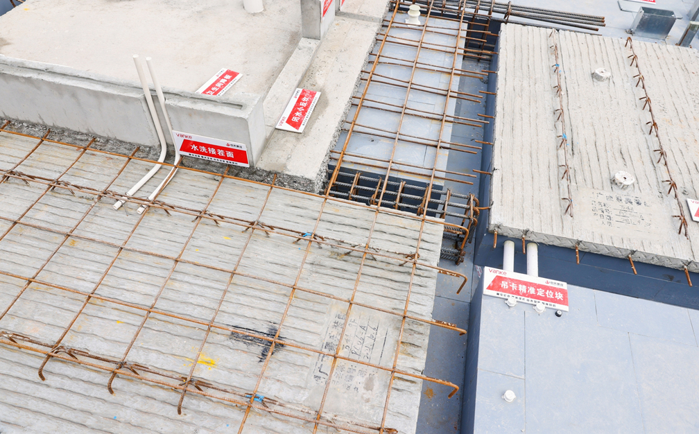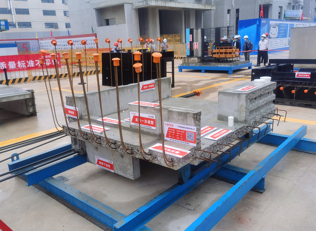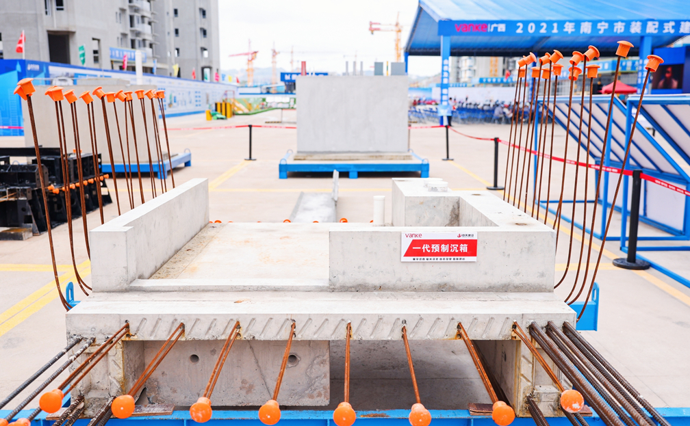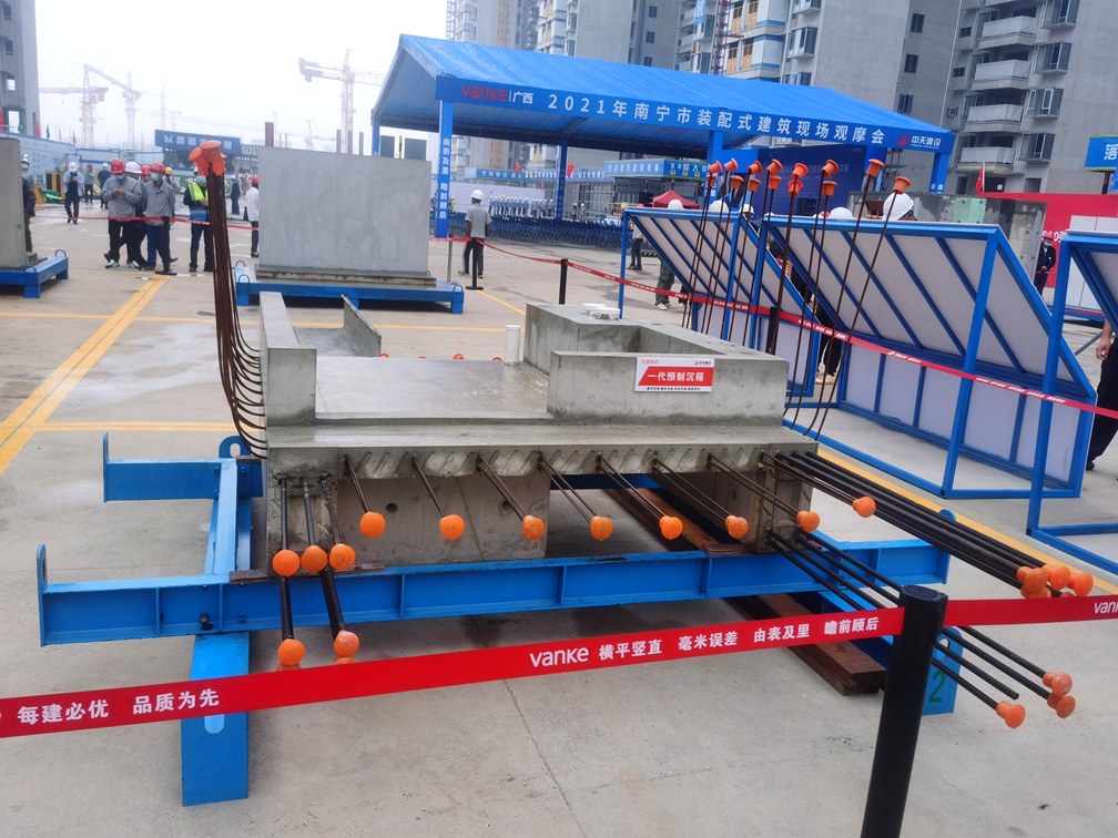 其中,由景典装配式公司生产并供应的装配式预制产品在预制构件展示区、PC吊装及安装展示区进行展示,该项目主要的装配式预制产品有:飘窗、叠合楼板、外墙板、预制楼梯、卫生间预制沉箱等。对于万科·金域国际率先落地“三板体系”并增加卫生间预制沉箱工艺的创新做法,现场专家纷纷表示赞同:“金域国际是广西第一个也是唯一一个实施卫生间预制沉箱做法的项目,此工艺节点将能有效降低卫生间渗漏风险,万科这回真是为市场做了一次前瞻示范。”