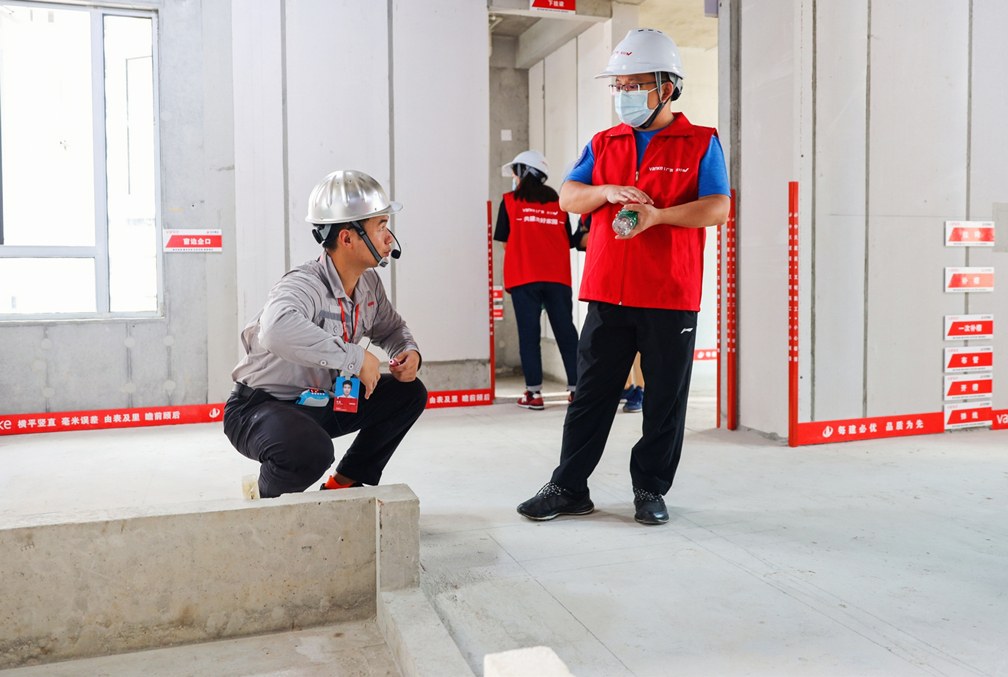 在工程师的陪同下,业主们进行了墙体的实测实量,确认墙体垂直平整;参与了铝窗淋水管的制作,确认万科建造的外墙没有渗漏情况。同时,还进行了现场体验,感受到了万科精细的工序及高品质的工艺。