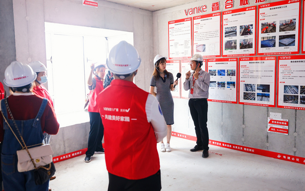 会议结束后,万科·金域国际工作人员带领南宁市住建局专家领导、中天建设集团企业代表、广西景典装配式建筑有限公司副总经理李琪等多位行业专家深入工程内部进行有序的参观,先后参观体验了“万科发展史”文化长廊、万科智慧体验馆、预制构件展示区、PC吊装及安装展示区、施工工艺介绍区、毛坯工艺展示区、精装工艺展示区等,亲身鉴证美好的发生,真切感受到了万科对于建筑品质的严格把控。