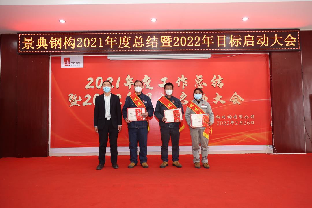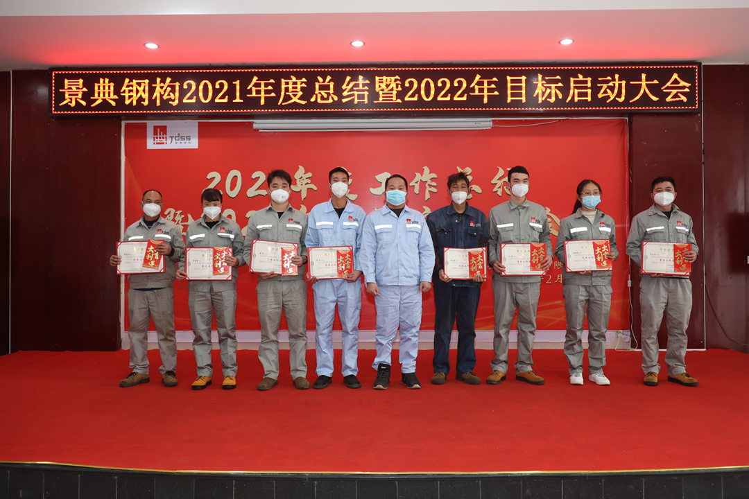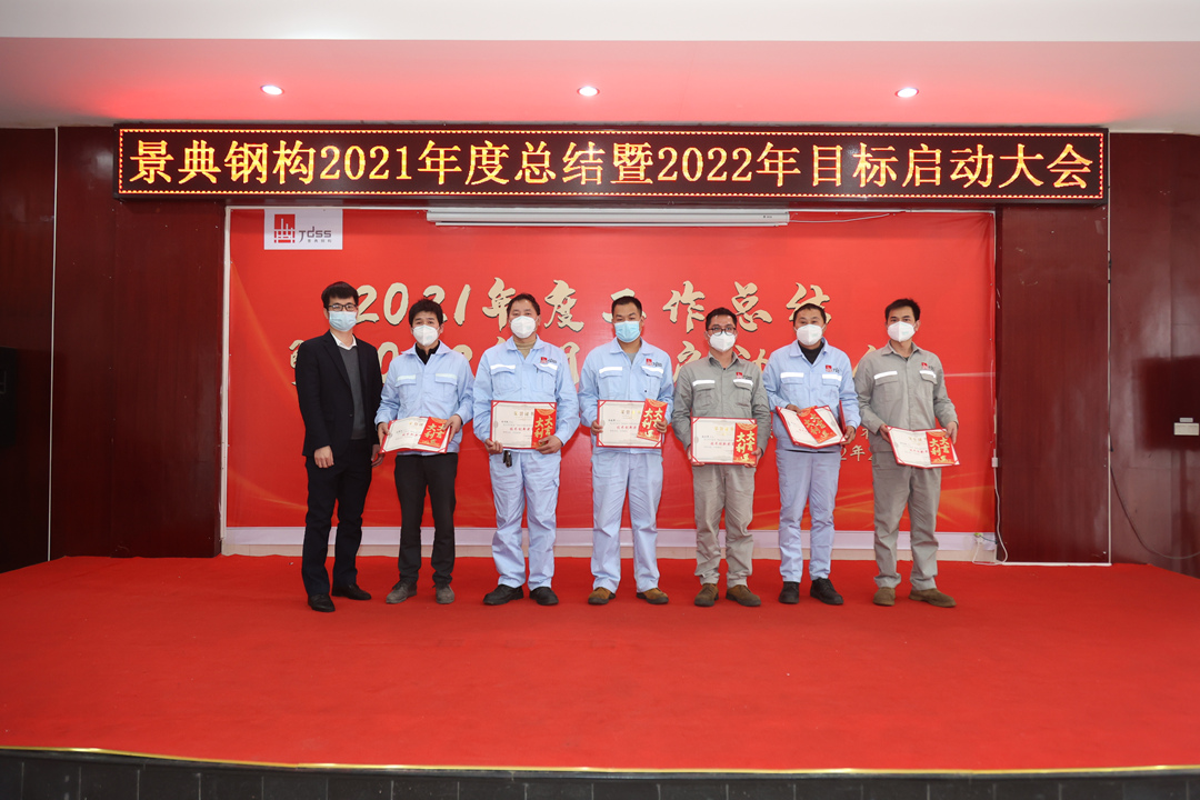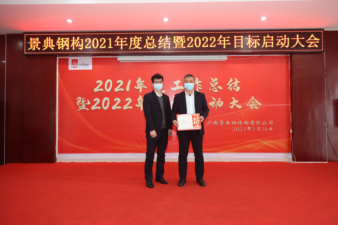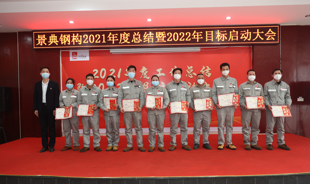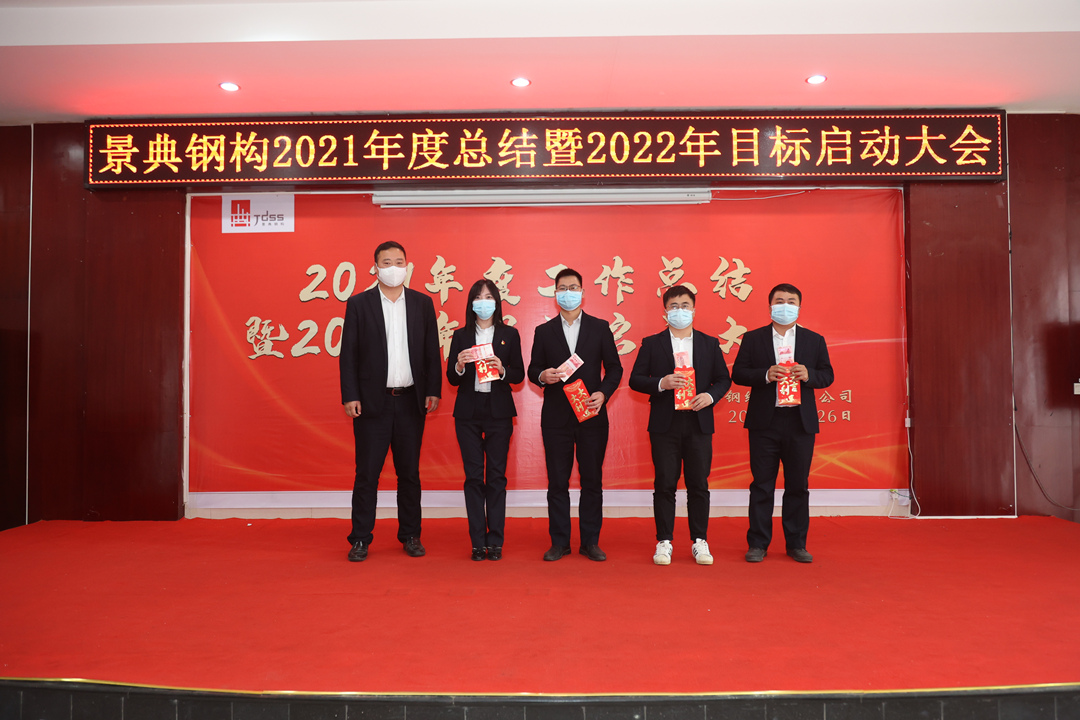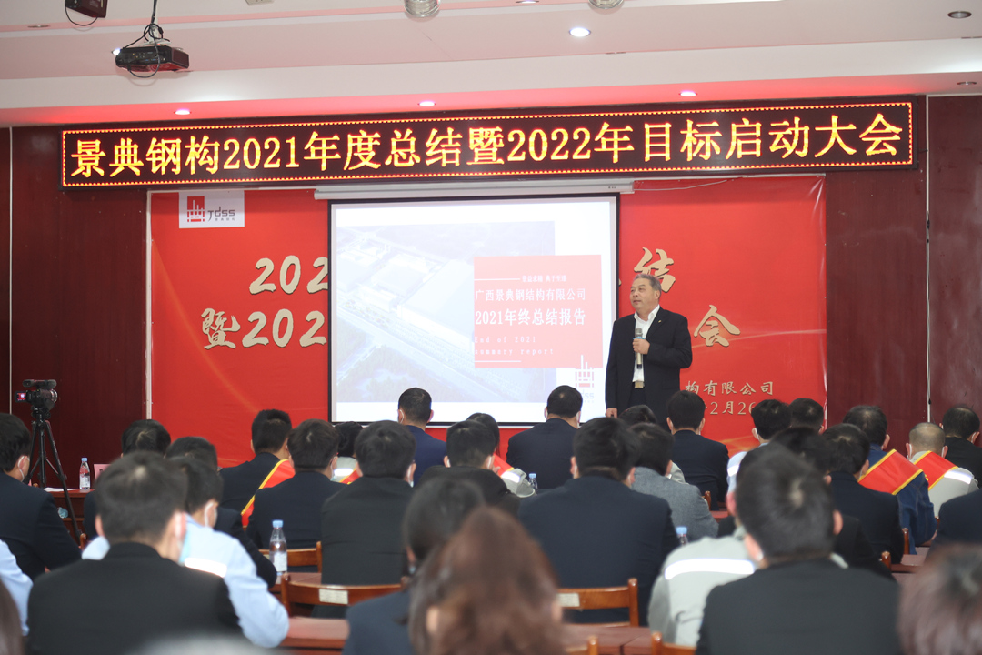 会上,夏云飞总经理对公司2021年全年的经营成果做全面的总结和分析,全面回顾2021年的工作亮点和成绩,对2021年取得的各项成绩表示肯定,并指出仍然存在的问题与不足;分析当下新形势,对2022年工作目标任务进行部署,提出三个要求:一要增强市场开拓能力,增大市场推广力度,提高营销业务开展实力,增强资金流动稳定性,增强企业盈利能力。二要创新项目管理模式,强抓安全质量管理,不断降低生产管理成本。三要以经济效益为中心,扩大生产能力,提高产品质量,提高经营主动性,提升服务水平,统筹区内区外市场,做专做优钢结构产业链业务,全面推动景典公司高质量发展。