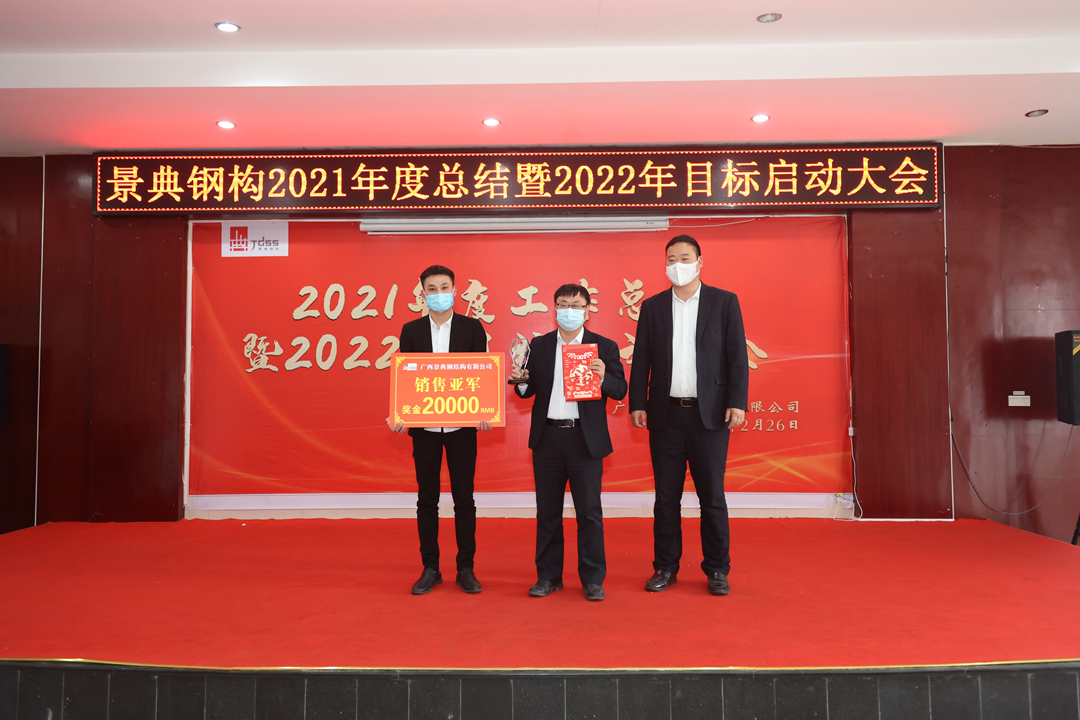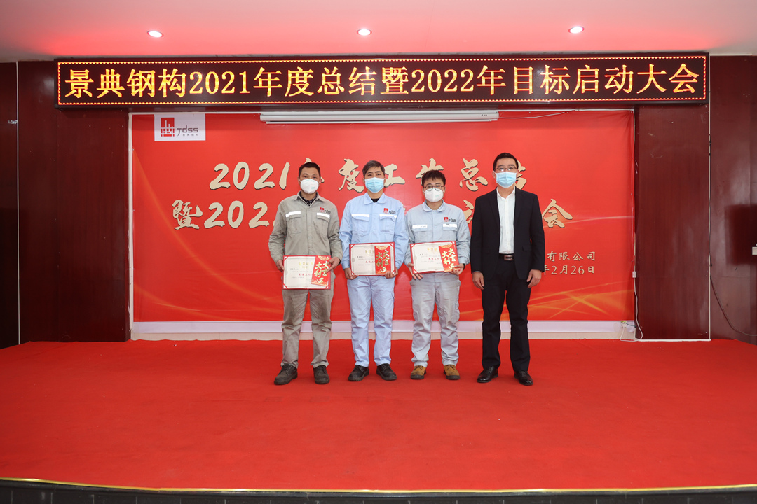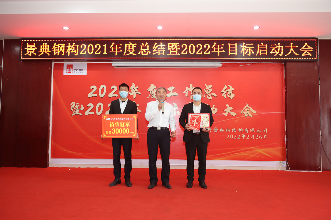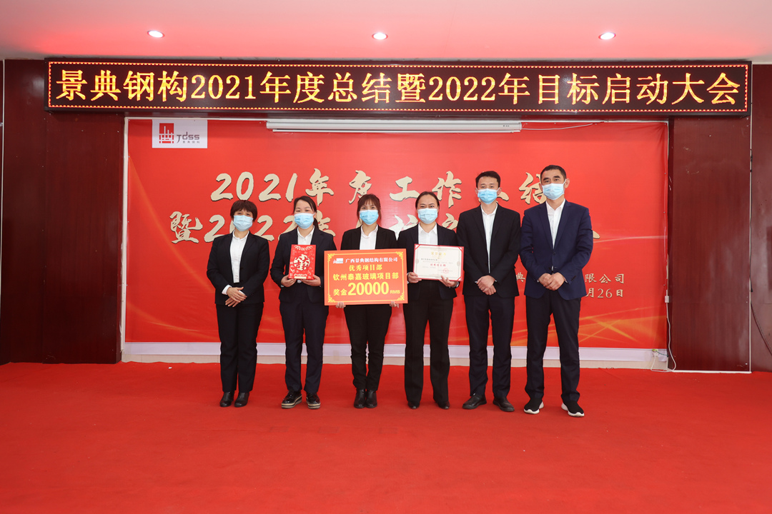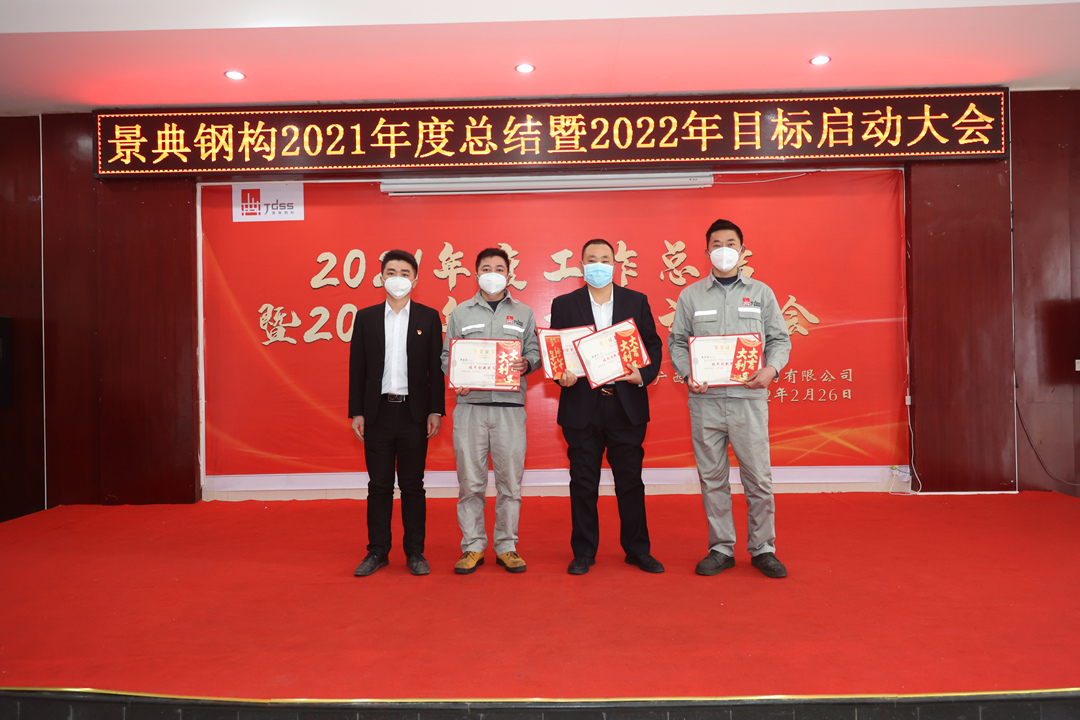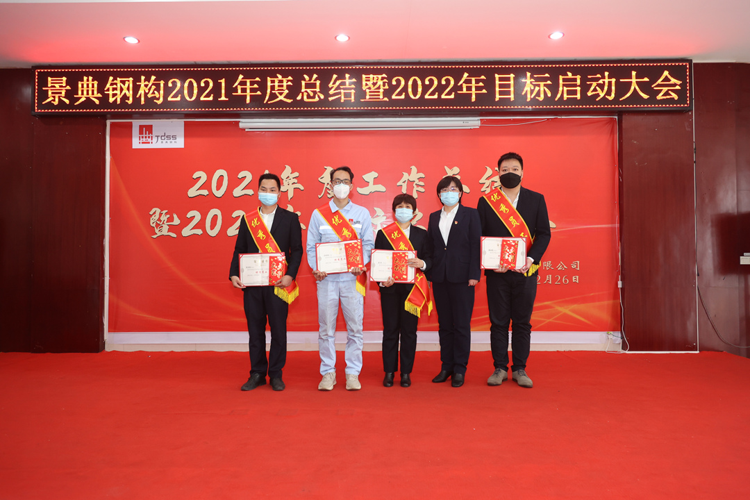 会上,夏云飞总经理对公司2021年全年的经营成果做全面的总结和分析,全面回顾2021年的工作亮点和成绩,对2021年取得的各项成绩表示肯定,并指出仍然存在的问题与不足;分析当下新形势,对2022年工作目标任务进行部署,提出三个要求:一要增强市场开拓能力,增大市场推广力度,提高营销业务开展实力,增强资金流动稳定性,增强企业盈利能力。二要创新项目管理模式,强抓安全质量管理,不断降低生产管理成本。三要以经济效益为中心,扩大生产能力,提高产品质量,提高经营主动性,提升服务水平,统筹区内区外市场,做专做优钢结构产业链业务,全面推动景典公司高质量发展。