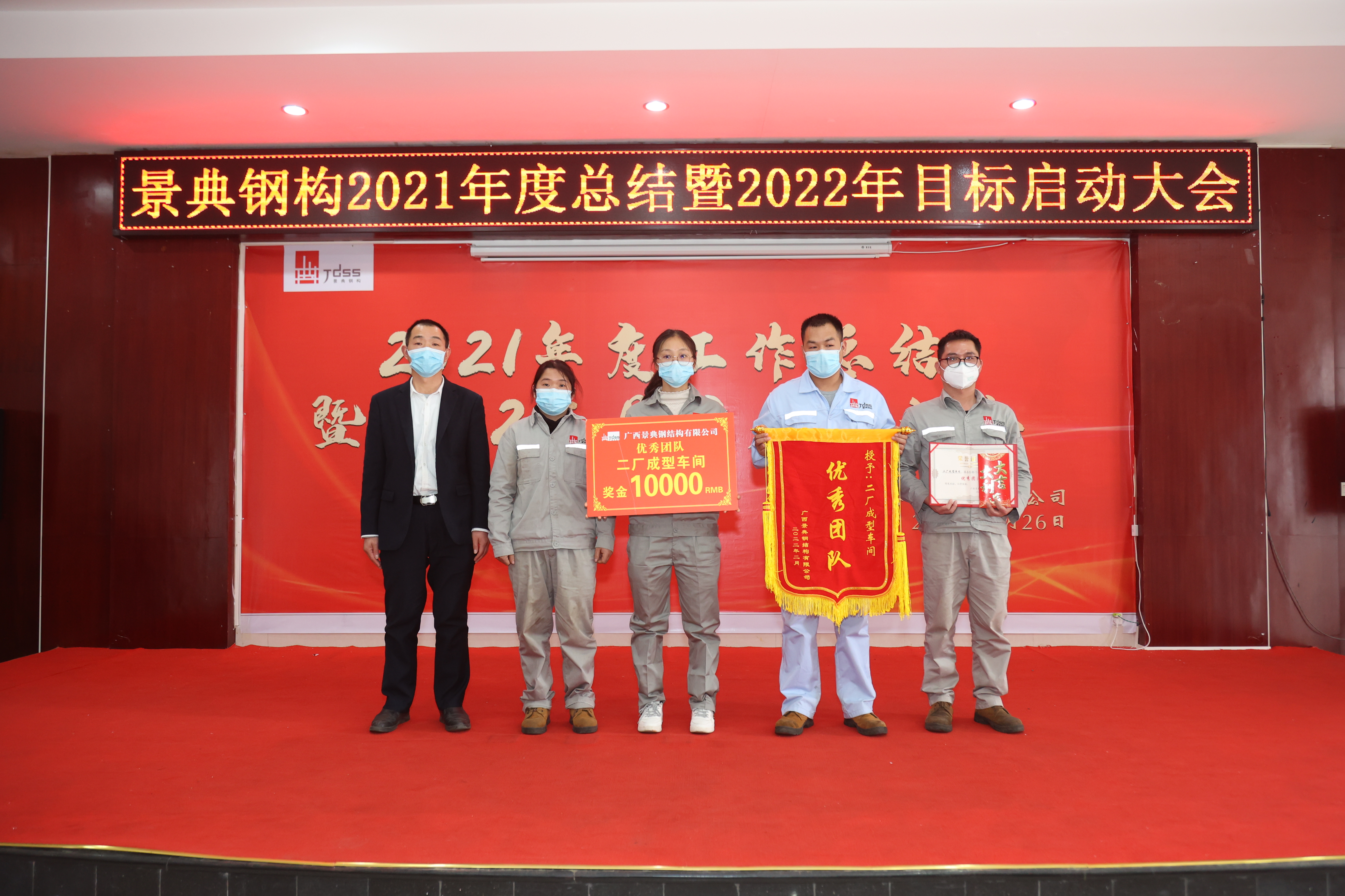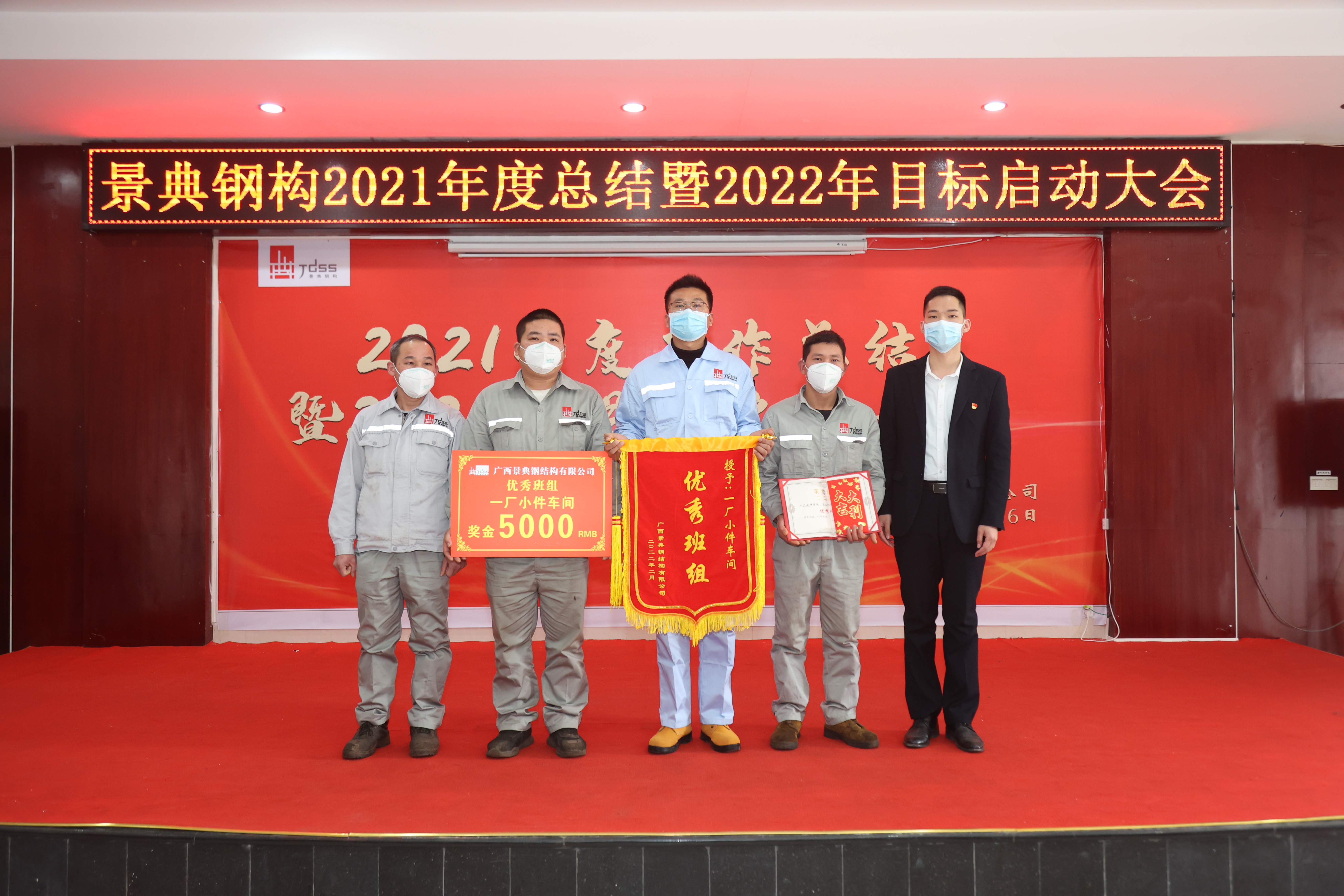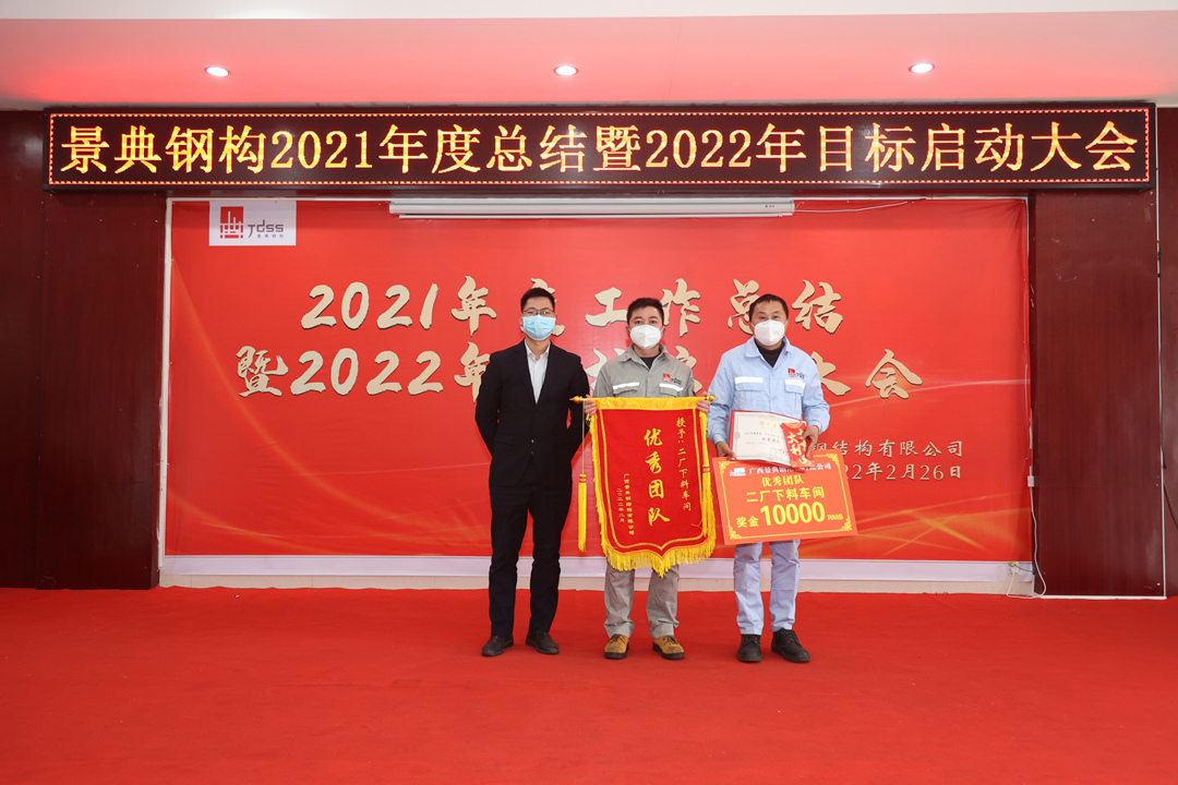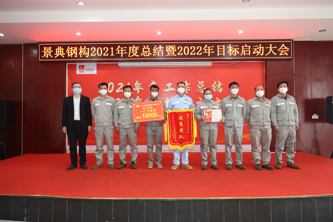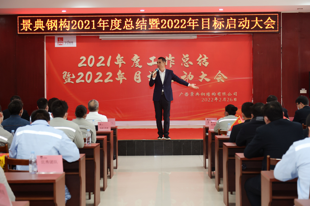 2022年2月26日,景典公司在六景工业园区钢结构加工生产基地隆重召开2021年度工作总结暨2022年目标启动大会。公司全体高层领导出席会议,全体管理骨干参加会议。
