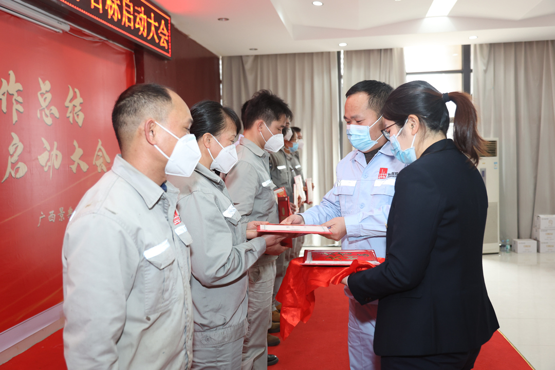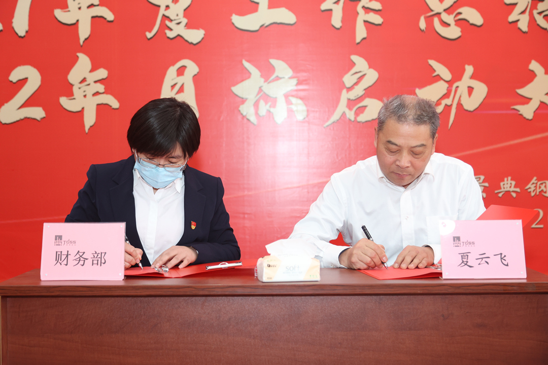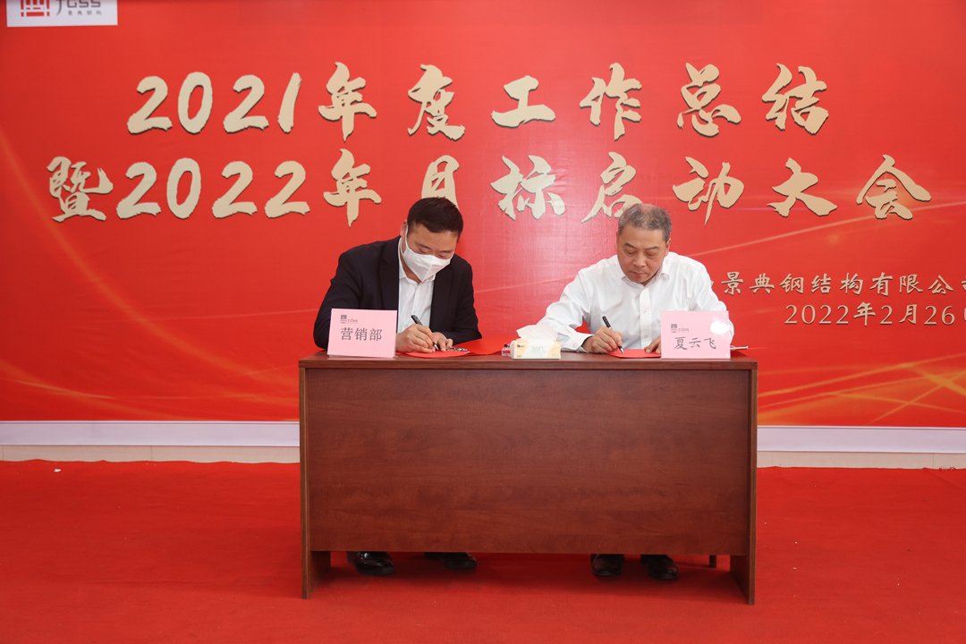 夏总作2022年的工作动员讲话,与有关部门签订目标责任书。对2021年度工厂奋战60天誓师大会的承诺作兑现颁奖,对2021年市场开拓成绩显著的个人作表彰颁奖。