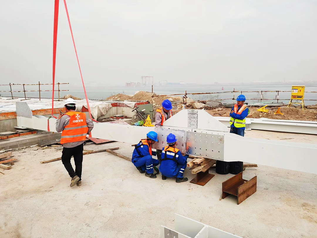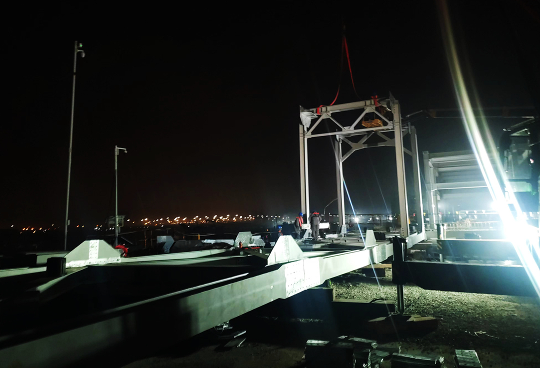 项目自开工以来,受疫情的影响,不仅材料采购艰难,加工厂加工好的构件在运输环节也遇到重重阻碍,加之施工场地的条件限制,给人行桥和管线桥的安装和焊接带来了较大的进度压力。