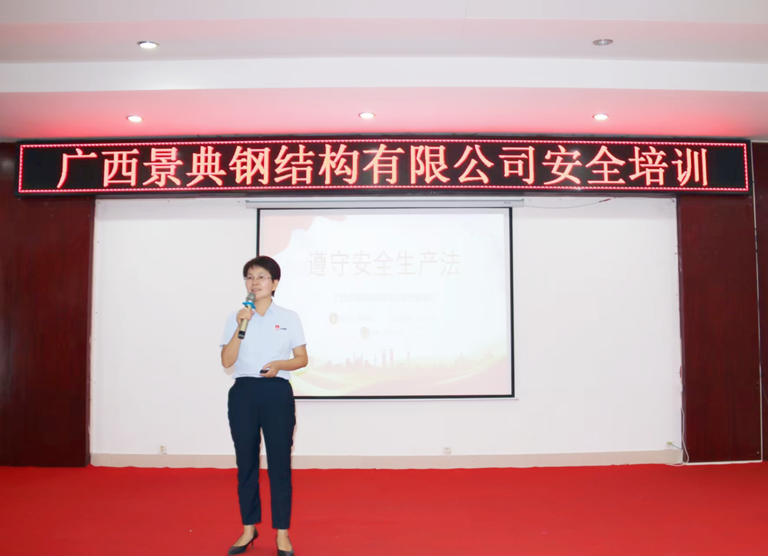 6月30日下午,从企业发展实际和安全生产工作实际出发,严格落实安全生产工作,从根本上消除事故隐患,有效遏制重特大事故的发生。我司在六景工业园区景典钢结构加工厂四楼会议室举办了安全培训大会,人力行政副总、工会主席苏国惠以及安全部黄伟共同为工厂职工做安全培训,确保安全生产平稳运行。
