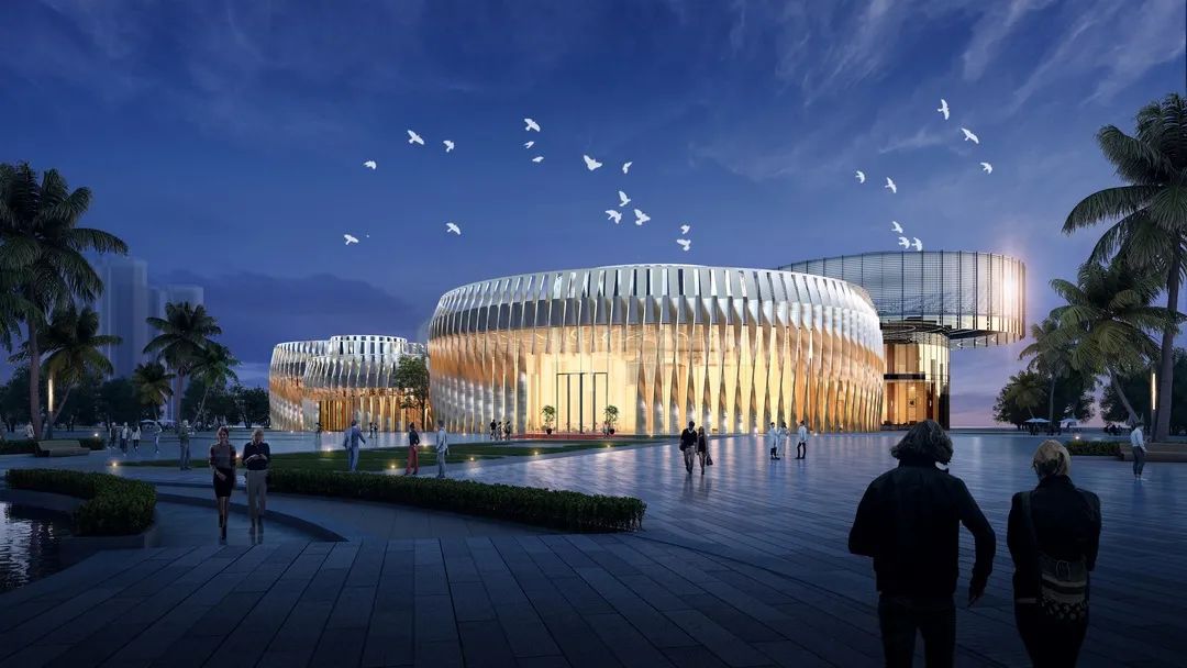 海南疍家博物馆群总建筑面积9120.07㎡,项目位于海南省陵水黎族自治县新村镇,毗邻瀉湖水岸和4A级风景名胜区“南湾猴岛”,东北部与国家红树林生态保护林区接壤。项目外形如“疍家帽”,建筑平面呈圆形,立面呈“编织”效果,四座圆形建筑相套连浮于南海之上。整体采用了装配式钢结构,拟建设疍家文化体验区,融合疍家民俗文化、饮食文化、服饰文化、生产文化于一体,打造沉浸式、参与式、互动式的生态体验区。