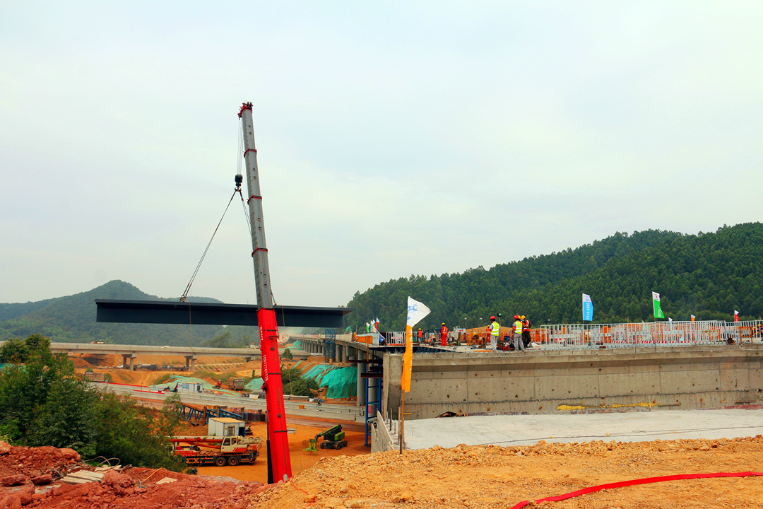 G80广昆高速公路南宁至百色段改扩建一期工程是自治区重要攻坚项目,是 “强首府”战略和国家西部新通道建设的重要战略发展项目。该项目的钢箱梁由我司负责深化设计、制造、安装,项目体量大,加工精度要求高,工期紧,任务重,在广西交投和一航局领导的支持和指导下,工程建设在原计划的工期内圆满完成吊装任务。