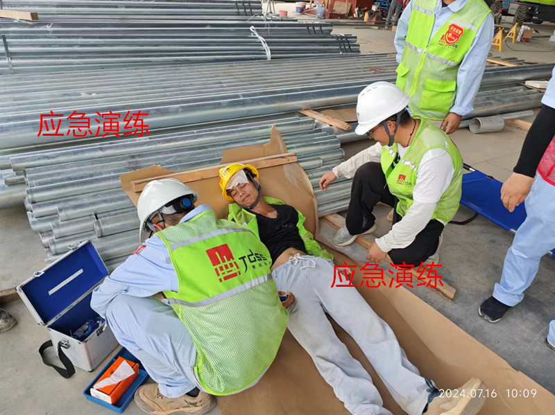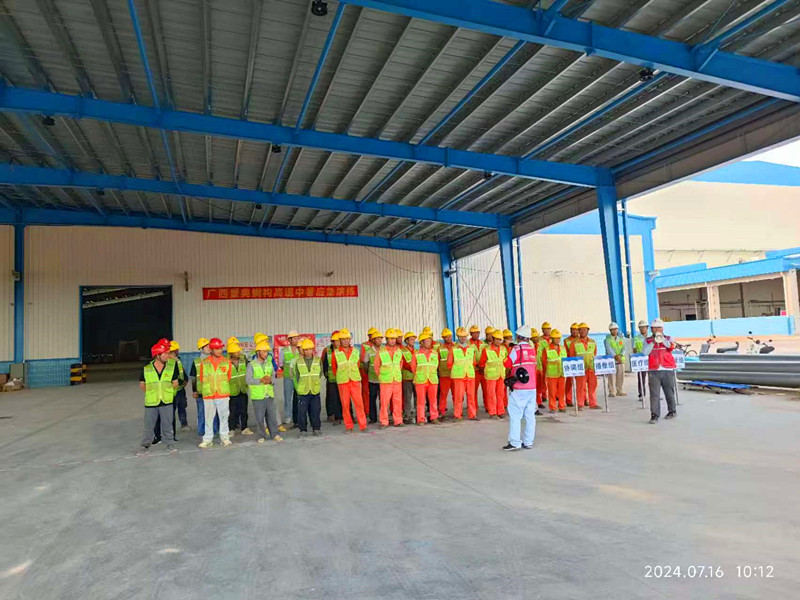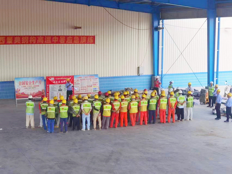 7月16日,广西景典钢结构有限公司玖龙纸业(北海)项目部成功举办了一场高温中暑应急演练活动,旨在提高项目管理人员及劳务施工人员在高温环境下的应急反应能力和中暑防范意识,确保施工安全顺利进行。
