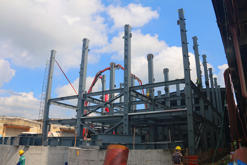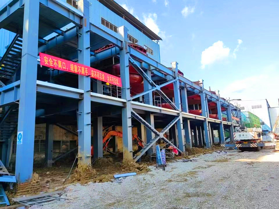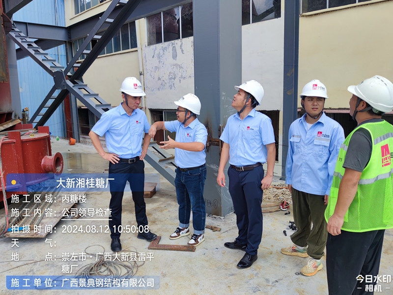 广西大新湘桂制糖有限公司蒸发楼和丙糖楼工程项目位于广西崇左市大新县雷平镇广西大新湘桂制糖有限公司厂区内,分为蒸发楼和丙糖楼两个单体,建筑结构下部为钢筋混凝土+预埋地脚螺杆结构,上部为钢结构框架结构,蒸发楼建筑高度26.1米,地上四层框架钢结构,占地面积约653.6㎡,用钢量约500吨;丙糖楼建筑高度31.1米,地上四层框架钢结构,占地面积约965.4㎡,用钢量约650吨。