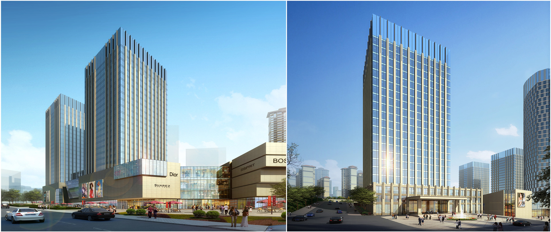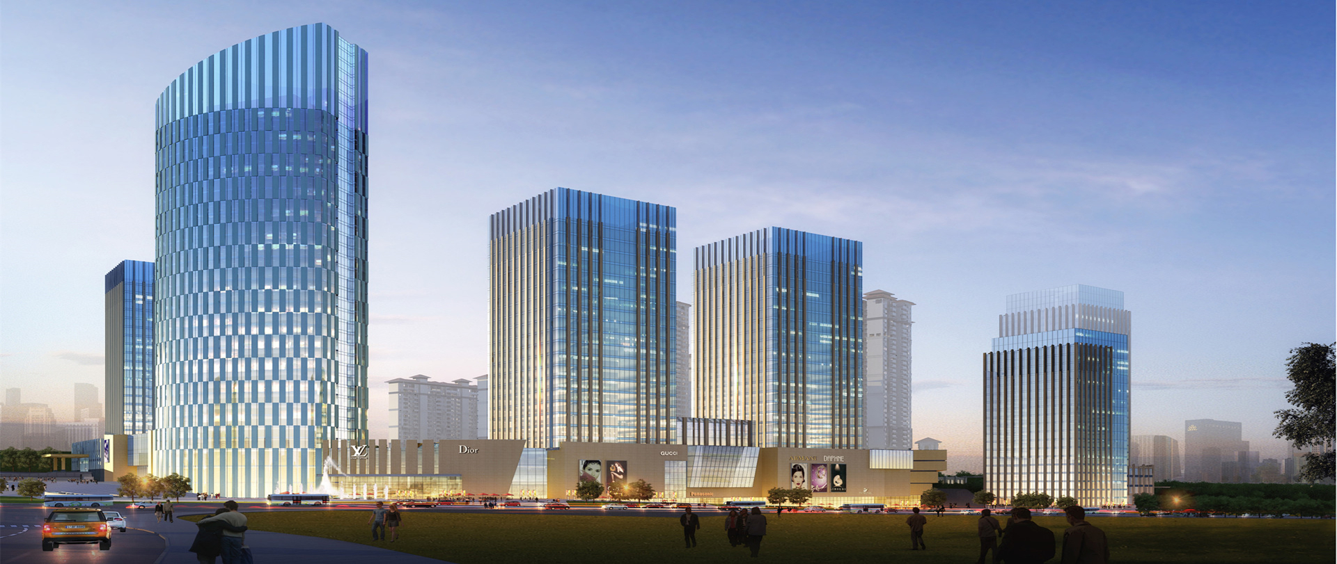 项目钢结构主要涉及在裙楼2层、3层、4层及屋面顶层,主要包括钢柱及钢结构连廊。商业裙房屋顶层的大空间悬挑部分为钢管混凝土柱、钢骨混凝土梁、柱。由广西景典钢结构有限公司建设。