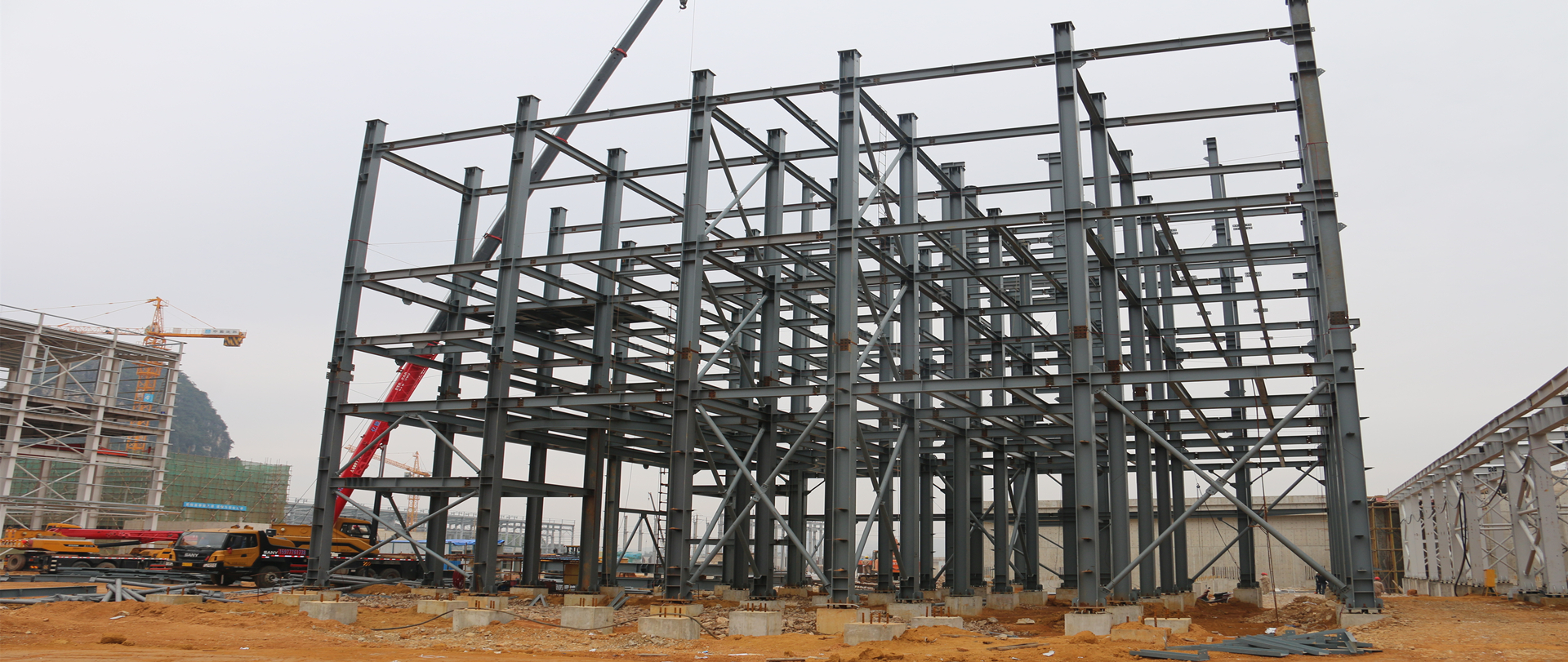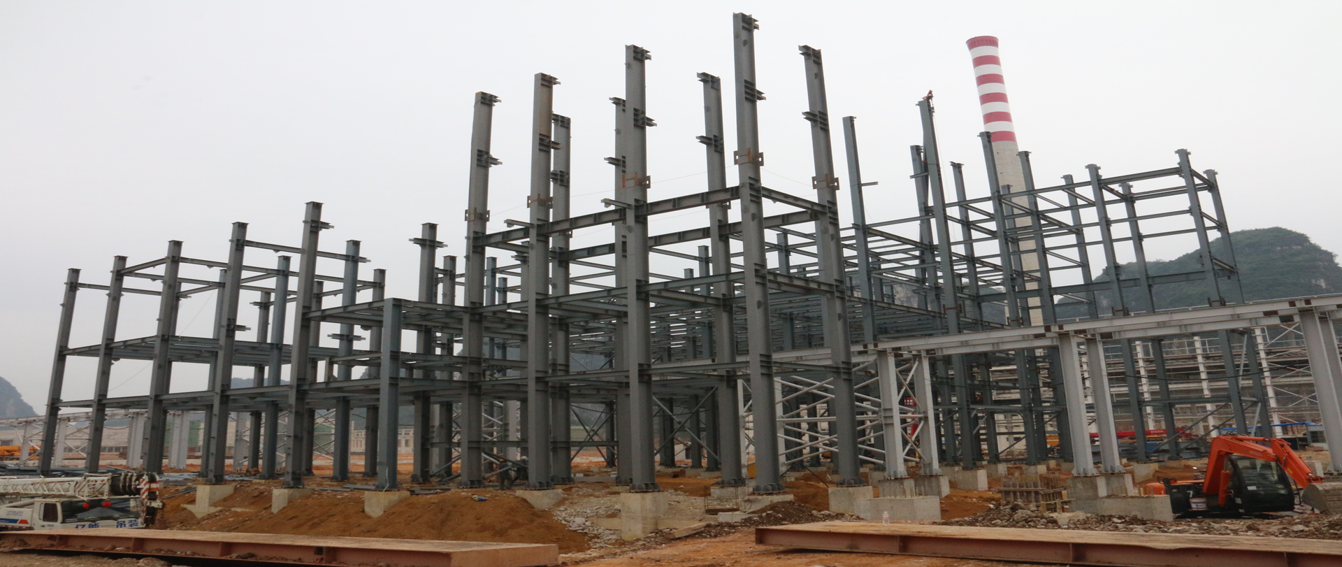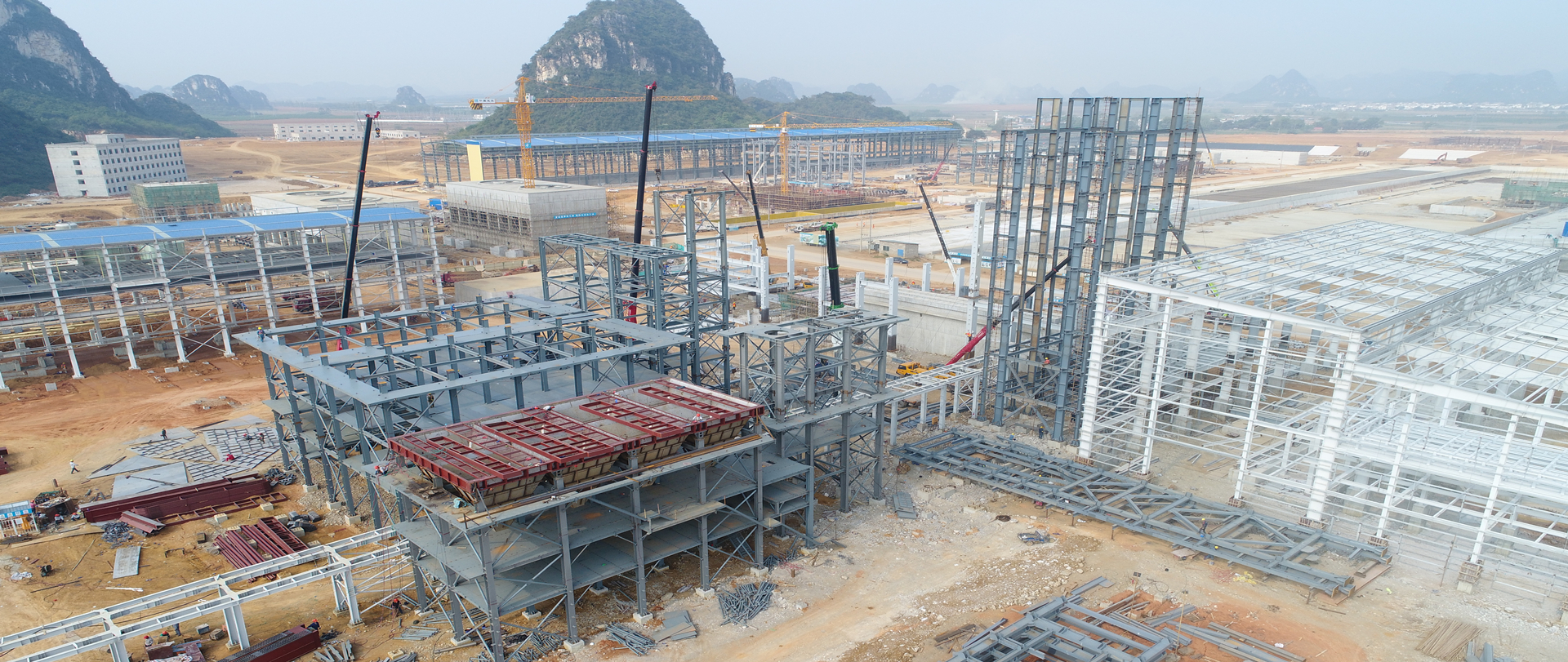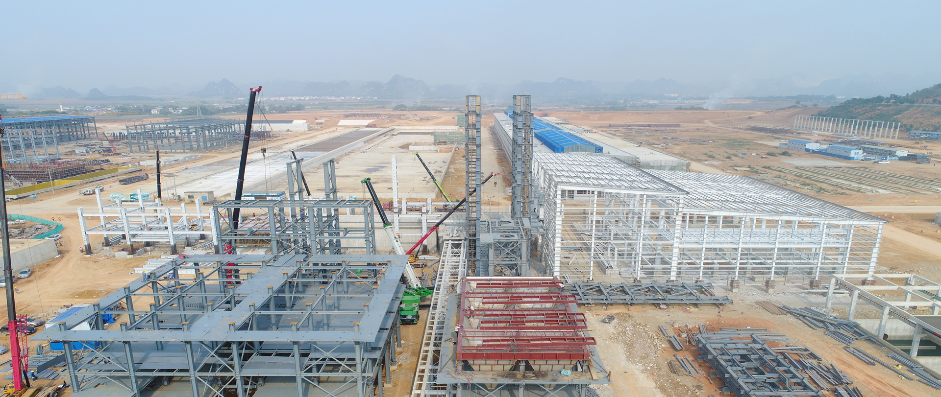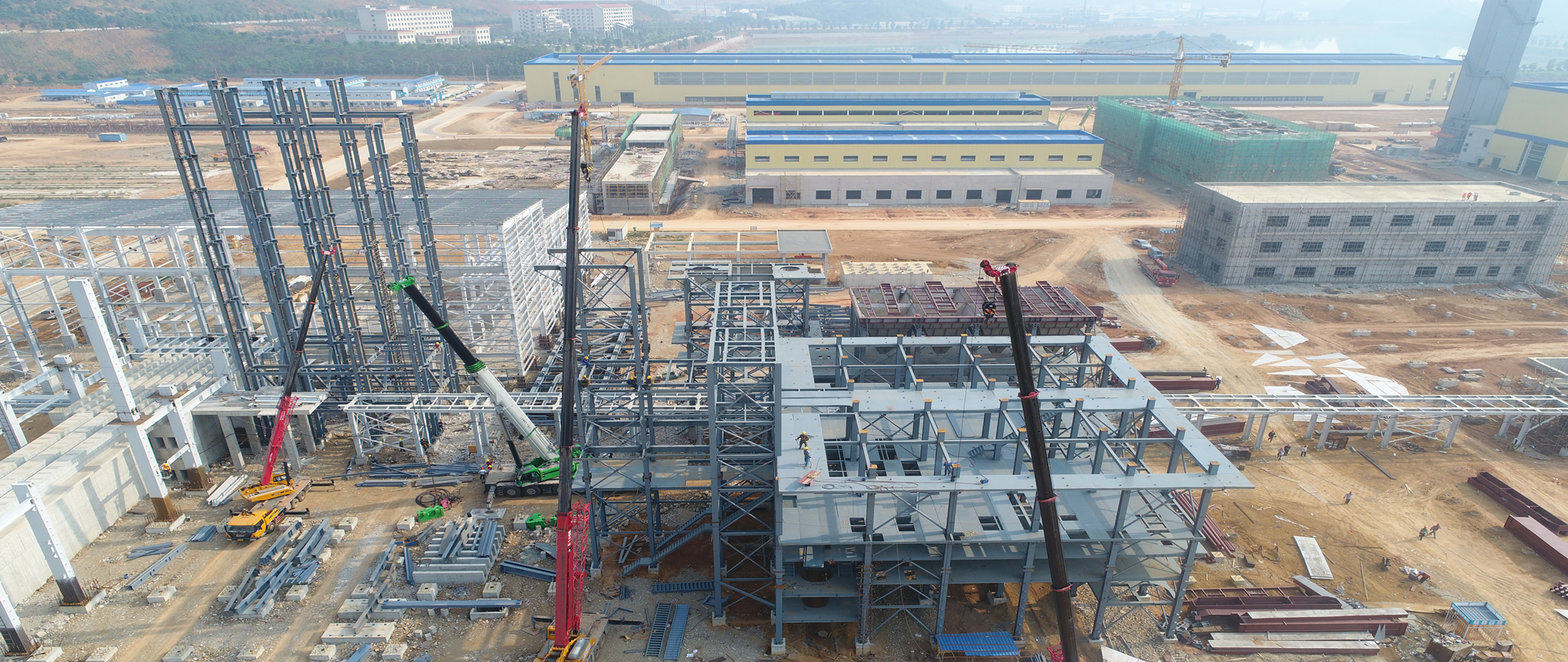 我司承建精矿库和电解车间、2#精矿库、熔炼主厂房、综合仓库和机修车间、专家楼等。