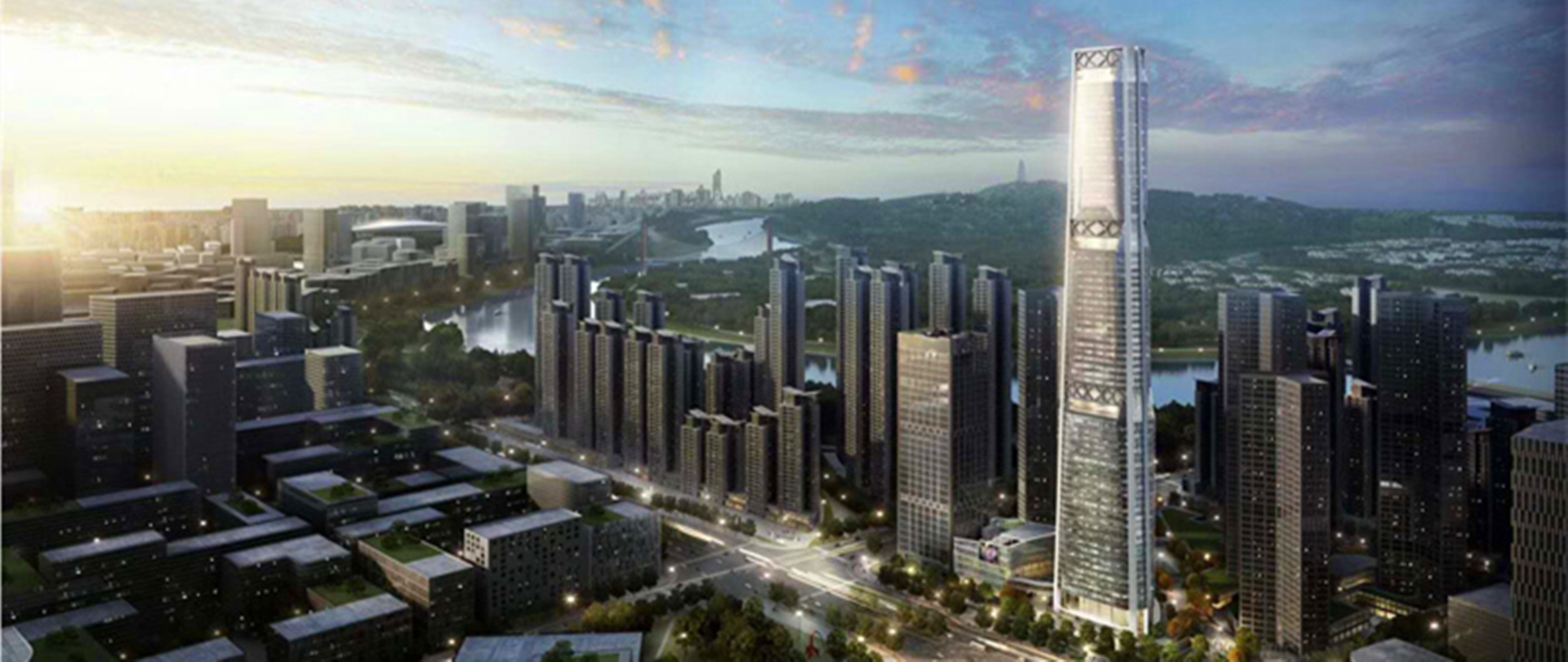 本次项目结构形式采用复合外围框架+带状桁架+钢筋混凝土核心筒双重结构体系,塔楼的外框钢结构平面上呈三角形布置,并向结构内侧以小角度倾斜。地上部分塔楼每个角布置2根四边形钢管混凝土巨柱,共计6根,巨柱最大截面宽4.7米。三角形外框每边设置4根圆管柱,共计12根,钢板最大板厚100毫米。本次项目细致到每毫米,都经过景典工程师好几遍的计算、核对、检验。