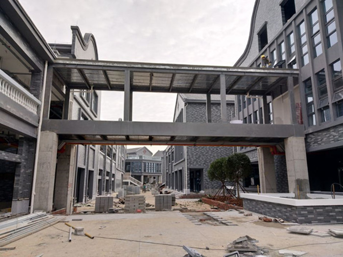 钢结构连廊是复杂高层建筑结构体系的一种,它一般指两栋或几栋高层建筑之间由架空连接体相互连接,以满足建筑造型及使用功能的要求,连接体即连廊。为确保连廊的安全性和稳定性,钢结构连廊备受青睐。